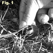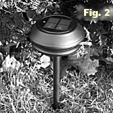 Press collector stake in ground. DO NOT PRESS ON UPPER SOLAR COLLECTOR as excessive pressure could damage the inner components (Fig. 1).