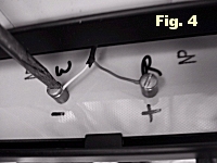 - Discreet (hide) the low voltage wire to the EVERLITE Illuminator and connect Red wire to the + (R) and white (W) to marked terminal posts. The power supply is very low voltage so it’s not dangerous electrically. Just keep it from becoming a trip hazard or getting caught in lawn & garden equipment (Fig. 4).