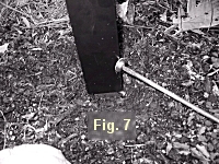 - Place Post assembly over stake so the bottom of the yard post rests on the roll pin. Fasten the yard post to the stake with the provided slot screw and washer. You will want to bend down and visually locate the drilled and tapped hole through the post prior to fastening. It’s makes it easier to know where you’re going (Fig. 7).
